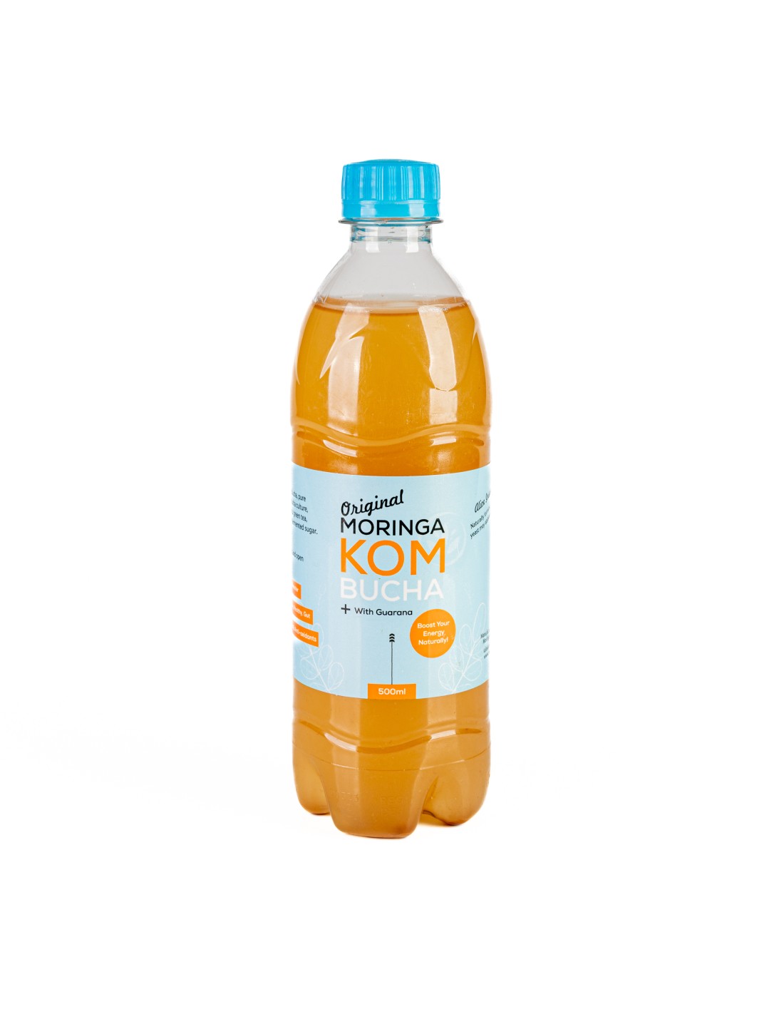 Moringa Our kombucha is lovingly made with green and moringa teas and is naturally fermented using timeless methods with a scoby and cane sugar. We've added guarana to the mix as a tonic to boost energy and mental clarity - to create the ultimate healthy refreshment.